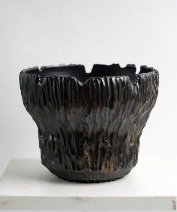 Black ⧗ Bone series inspired from the fractured cartilage; black, raw remnant of the living. Made with a black clay with dripping gloss accent on the surface. Porous planter with thick wall for outdoor or indoor use. Made by Frans Muller for Specimenwerk.