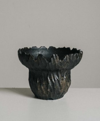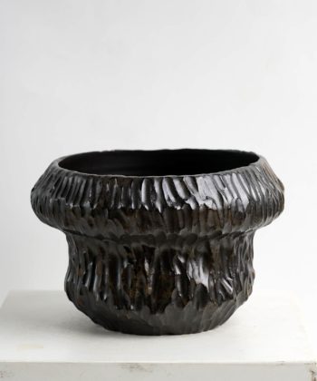 Black ⧗ Bone series inspired from the fractured cartilage; black, raw remnant of the living. Made with a black clay with dripping gloss accent on the surface. Porous planter with thick wall for outdoor or indoor use. Made by Frans Muller for Specimenwerk.