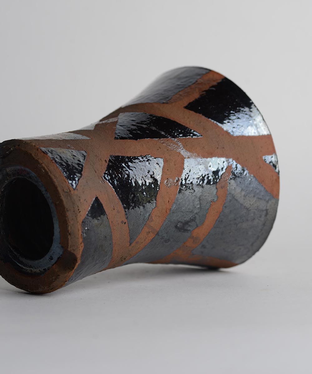Monolith is an exclusive series, done in traditional japanese raku technique. Monolith is an ancient futurism design inspired from the proto sinaitic script and runes. Limited edition piece with chromatic surface.